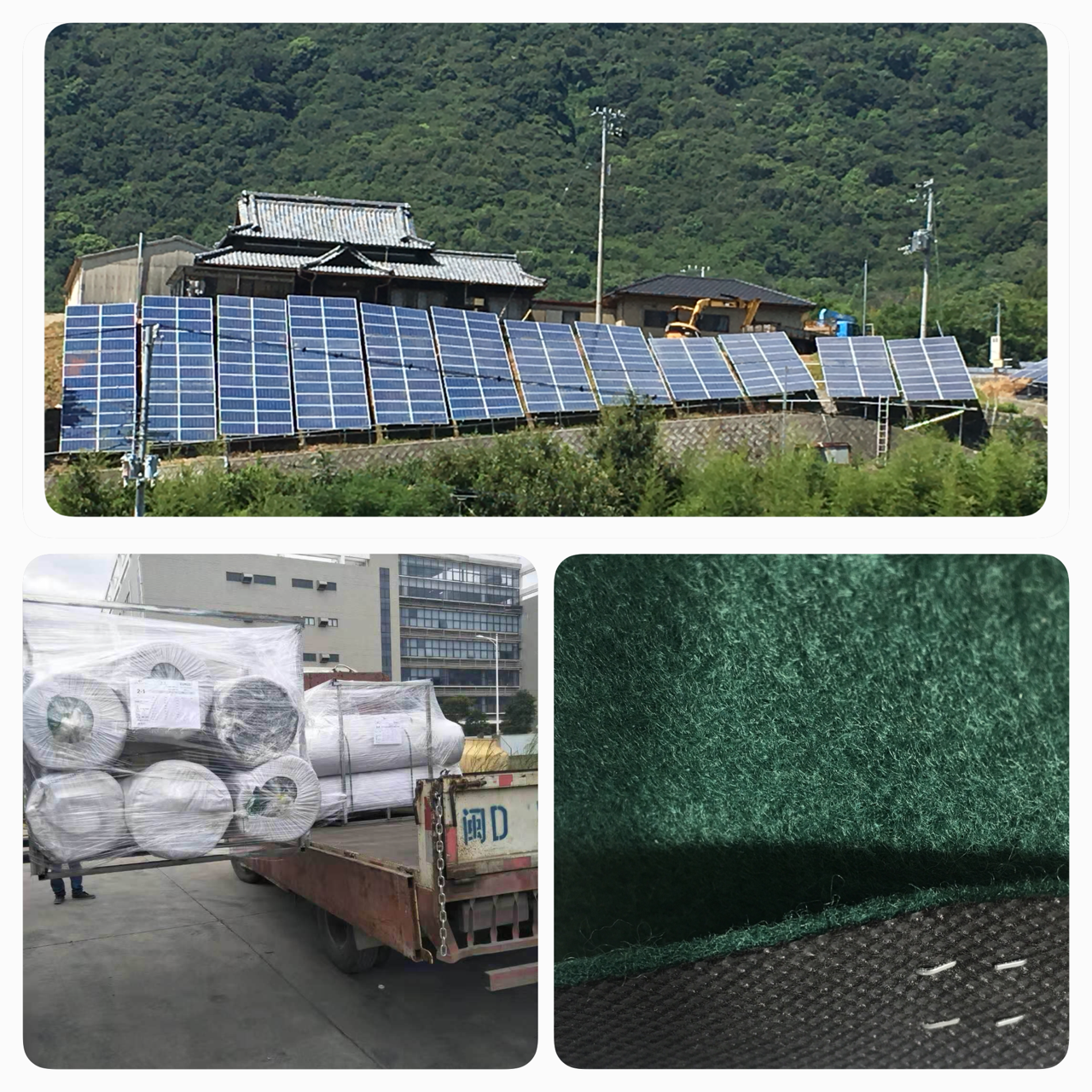 今回は注意しなければならない法面のパネル下の防草・防水対策について新しい商品を試験的に敷設いたしました。
